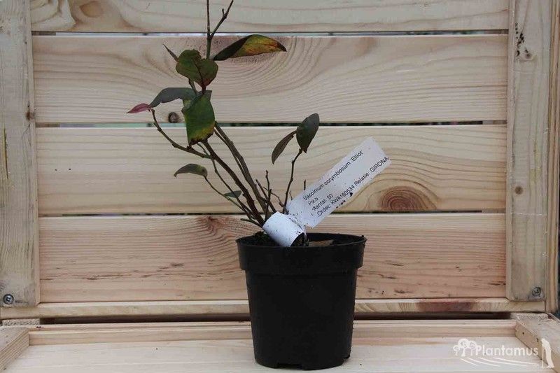 Vaccinium corymbosum Elliot. Planta de arándanos de la variedad Elliot, una variedad de arándano de cosecha tardía y muy productivo, frutos de tamaño medio y de buen sabor en fresco, usados en repostería y aptos para la congelación. Planta cultivada en maceta para poder trasplantar durante todo el año.