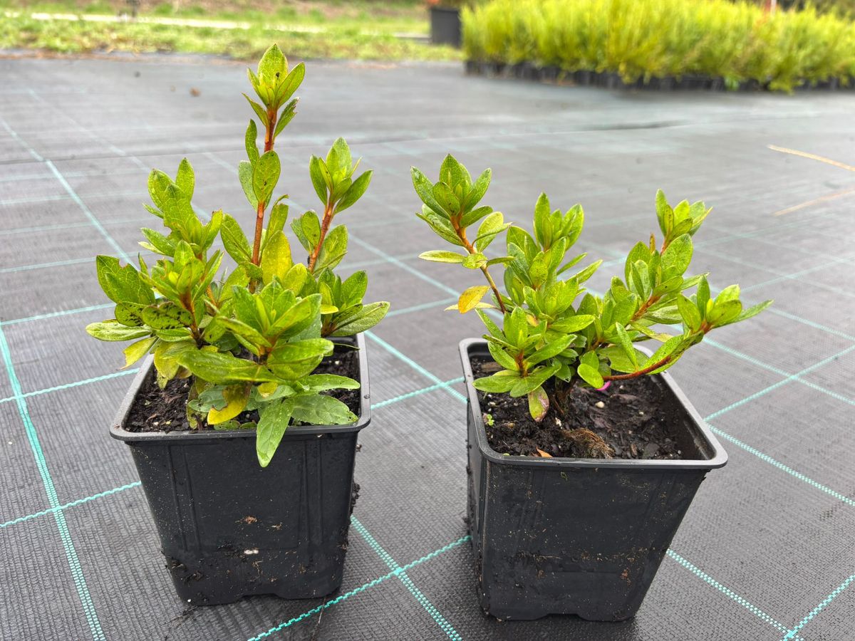 Esta azalea tiene unas pequeñas hojas de color verde oscuro brillante durante todo el año.