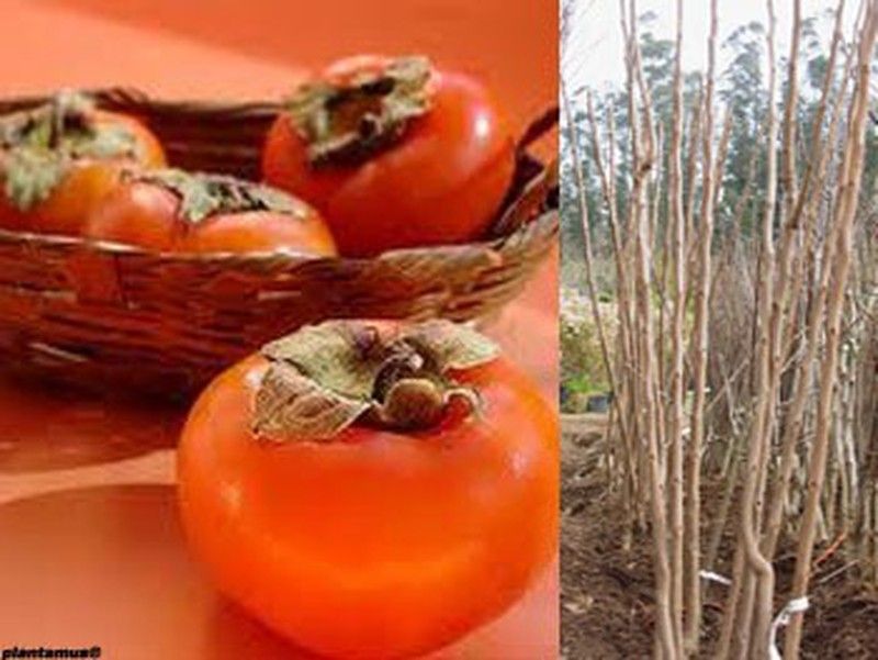 Árbol frutal de kaki rojo brillante. Plantón en cepellón.