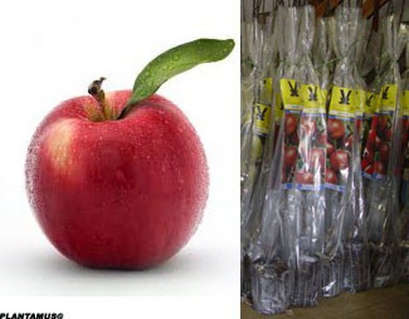 La manzana propiamente dicha es redonda y grande. El color de la piel es rojo (sobre todo en la parte expuesta al sol), con la carne amarillenta. Las hojas son grandes.