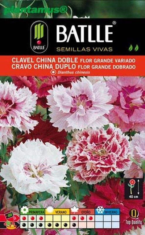 Semillas de clavel china doble flor grande variado. CLAVEL CHINO DOBLE (DIANTHUS CHINENSIS): Anual. Altura: 40 cms.