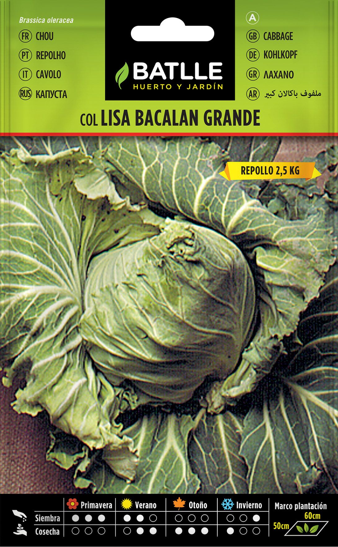 Semilla hortícola de col repollo bacalan grande, couve repolho