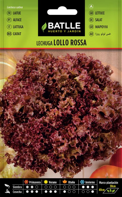 Variedad de lechuga de hojas muy rizadas y recortadas de color rojo oscuro. No llega a formar cogollo compacto. Se puede recolectar la planta entera o bien quitar hojas a medida que van creciendo. Muy adecuada para decoración de platos.